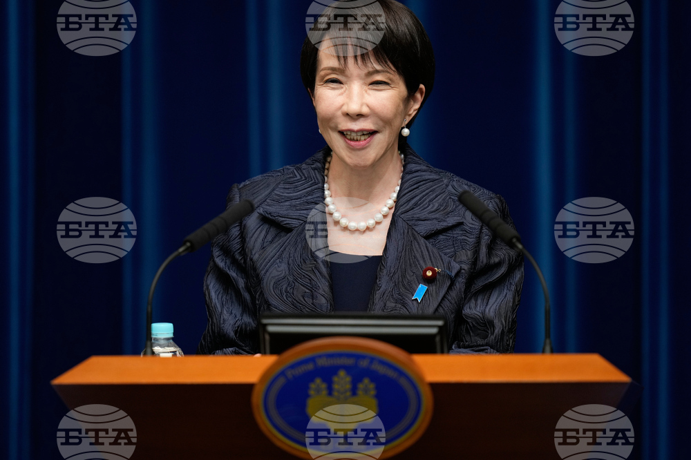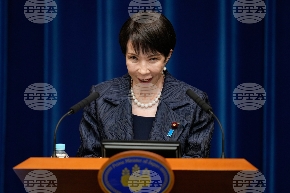 Japan's new Prime Minister Sanae Takaichi speaks during a press conference at the prime minister's office in Tokyo, Japan, Tuesday, Oct. 21, 2025. (AP Photo/Eugene Hoshiko, Pool)