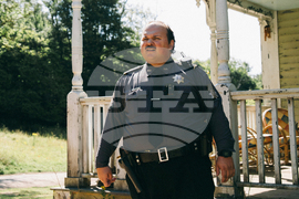 This image released by Focus Features shows Stavros Halkias in a scene from "Bugonia." (Atsushi Nishijima/Focus Features via AP)