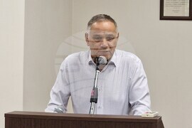 Стамболийски (21 октомври 2025) Общинският съвет на Стамболийски заседава извънредно относно бъдещето на терена на бившия завод „Монди“, който прекрати дейността си по-рано тази година. В същото време пред сградата на Народно читалище „Н. Й. Вапцаров - 1927“ в града се провежда граждански митинг. Той е организиран от инициативен комитет с искане за пълна прозрачност относно бъдещи сделки за продажба на завода и инвестиционни намерения, свързани със замърсяващи производства. На снимката: кметът на община Стамболийски Петър Неделев.