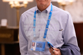 New York Giants co-owner Steve Tisch arrives for NFL owners meetings, in New York, Wednesday, Oct. 22, 2025. (AP Photo/Richard Drew)