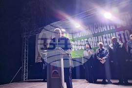 Смолян (21 октомври 2025) С тържествена заря-проверка тази вечер в Смолян бяха отбелязани 113 години от Освобождението на Родопите. Събитието тази вечер е кулминацията на честванията за Празника на Смолян, продължили повече от десет дни. На снимката: кмет на Смолян Николай Мелемов.