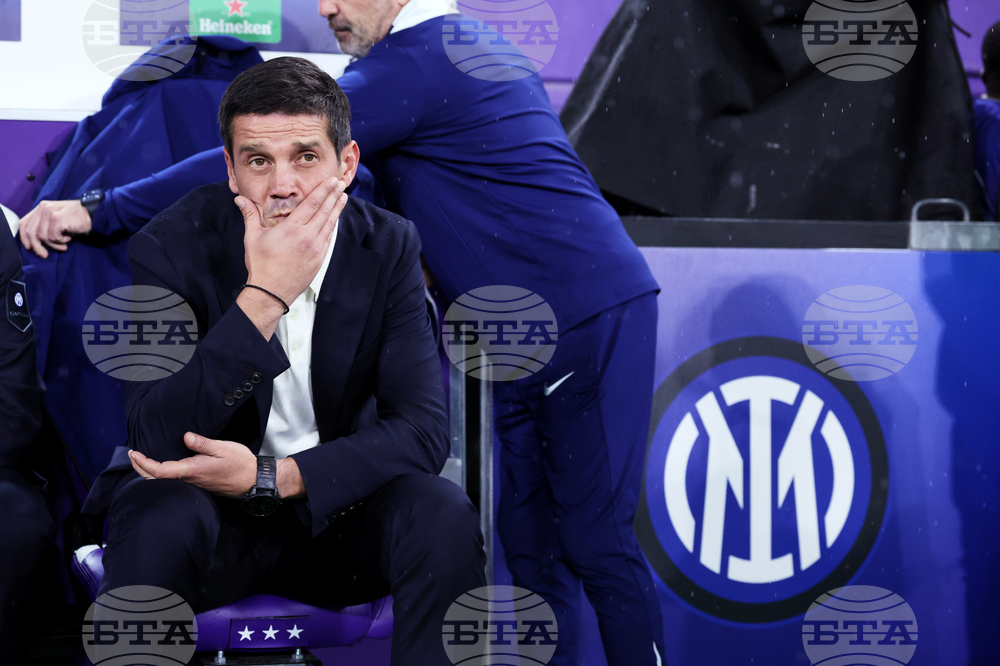 Inter Milan's head coach Cristian Chivu during the Champions League opening phase soccer match between Union St. Gilloise and Inter Milan in Brussels, Tuesday, Oct. 21, 2025. (AP Photo/Omar Havana)