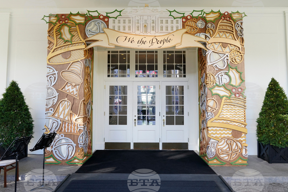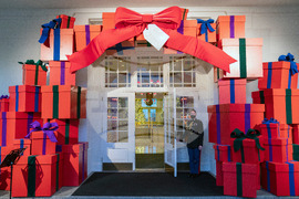 FILE - The entrance to the East Wing of the White House is decorated for the holiday season, Nov. 28, 2022, in Washington. (AP Photo/Patrick Semansky, File)