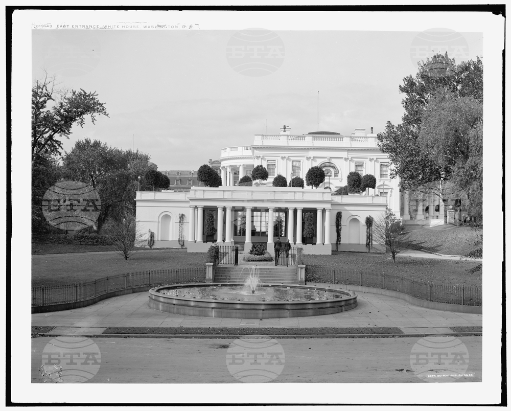 This photo provided by the U.S. Library of Congress shows the East entrance of the White House, Washington, in 1906. (U.S. Library of Congress via AP)