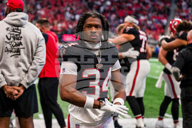 FILE - Atlanta Falcons wide receiver Ray-Ray McCloud III (34) walks to the bench before an NFL football game against the New York Giants, Dec. 22, 2024, in Atlanta. (AP Photo/Danny Karnik, File)