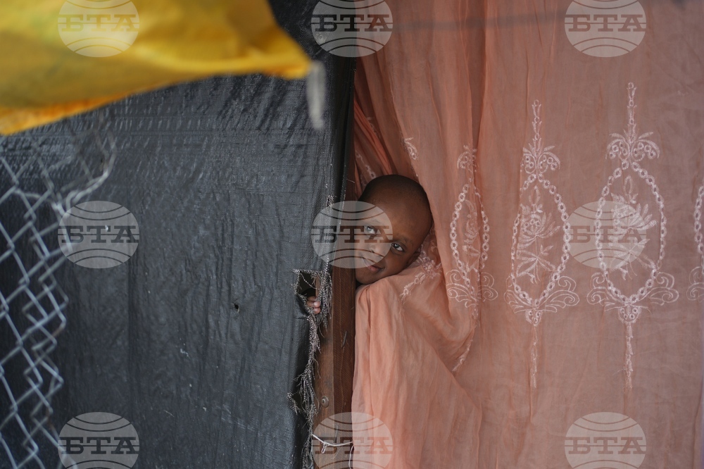 A child pokes his head out from behind a curtain at a shelter for families displaced by gang violence in Port-au-Prince, Haiti, Tuesday, Oct. 21, 2025. (AP Photo/Odelyn Joseph)