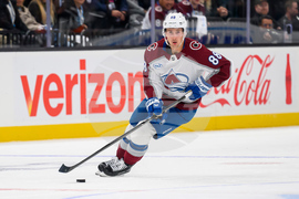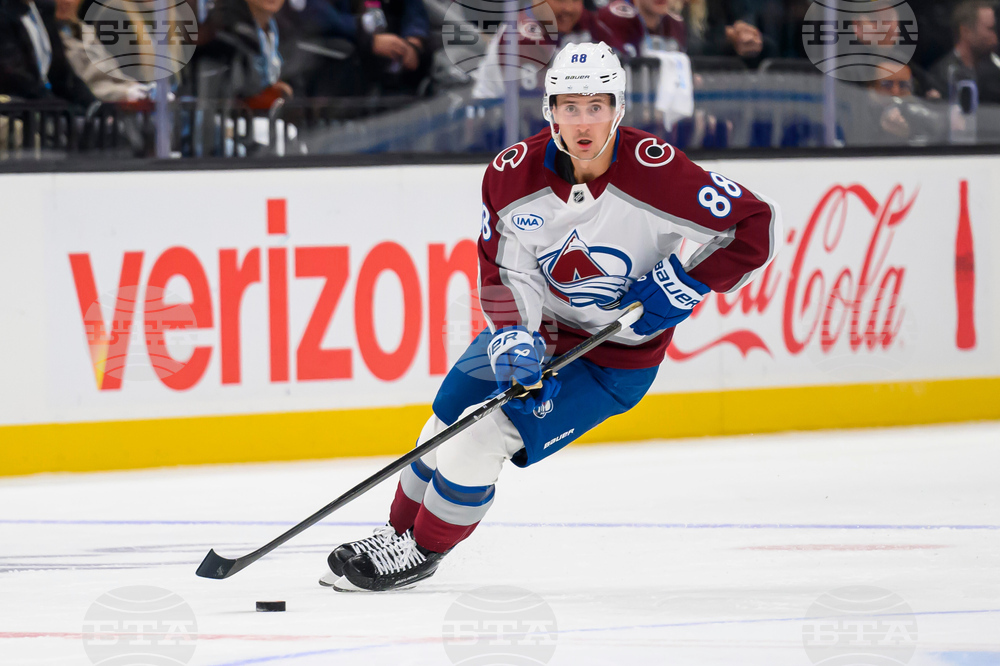 Colorado Avalanche center Martin Necas (88) skates the puck to the net leading to a goal during the third period of an NHL hockey game against the Utah Mammoth, Tuesday, Oct. 21, 2025, in Salt Lake City, Utah. (AP Photo/Tyler Tate)