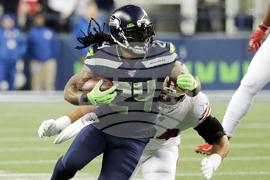 FILE - Seattle Seahawks running back Marshawn Lynch carries against the San Francisco 49ers during the second half of an NFL football game, Sunday, Dec. 29, 2019, in Seattle. (AP Photo/Ted S. Warren, File)