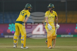 Australia's Ashleigh Gardner , right, and Australia's Annabel Sutherland run between the wickets during the ICC Women's Cricket World Cup cricket match between England and Australia at Holkar Cricket Stadium in Indore, India, Wednesday, Oct. 22, 2025. (AP Photo/Rafiq Maqbool)