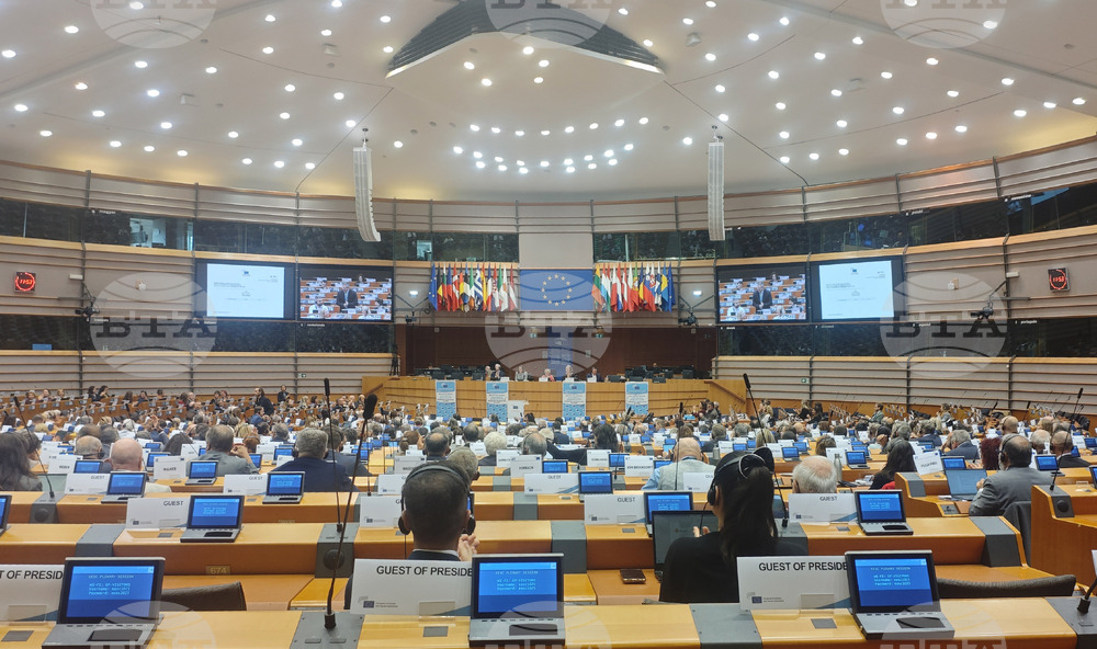 Брюксел (22 октомври 2025) Първо пленарно заседание от новия петгодишен цикъл в работата на Европейския икономически и социален комитет (ЕИСК) в Брюксел. Сред присъстващите са: президентът на КТ „Подкрепа“ Димитър Манолов (втори отляво), председателят на КНСБ Пламен Димитров (трети отляво), председателят на Икономическия и социален съвет на Република България Зорница Русинова (четвърта отляво).