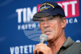 FILE - Former Sen. Scott Brown of Massachusetts hosts a campaign event, Sept. 7, 2023, in Rye, N.H. (AP Photo/Robert F. Bukaty, File)