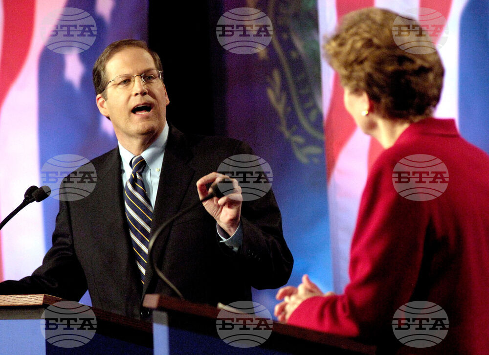 FILE - U.S. Sen. John Sununu, R-N.H., left, spars with Democratic rival and former governor Jeanne Shaheen during a live televised debate in Manchester, N.H., Oct. 30, 2008. (AP Photo/POOL/David Lane, File)