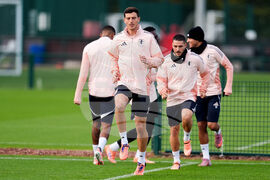 Aston Villa's Pau Torres during a training session at Aston Villa FC Training Ground, Birmingham, England,W ednesday Oct. 22, 2025. (Martin Rickett/PA via AP)