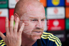 Nottingham Forest manager Sean Dyche speaks during a press conference at the City Ground, in Nottingham, England, Wednesday Oct. 22, 2025, one day ahead of their Europa League soccer match against Porto. (Mike Egerton/PA via AP)