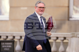 Britain's Prime Minister Keir Starmer arrives for a meeting of leaders of six Western Balkan nations with British and European officials at a Western Balkans Summit in London, Wednesday, Oct. 22, 2025.(AP Photo/Kirsty Wigglesworth, Pool)