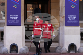 Members of the armed forces prepare for the arrival of leaders of six Western Balkan nations and British and European officials for a Western Balkans Summit in London, Wednesday, Oct. 22, 2025.(AP Photo/Kirsty Wigglesworth, Pool)