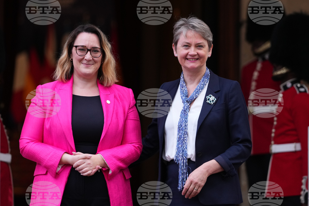 Britain's Foreign Secretary Yvette Cooper welcomes Polands Deputy Foreign Minister Henryka Moscicka-Dendys to a meeting of leaders of six Western Balkan nations with British and European officials at a Western Balkans Summit in London, Wednesday, Oct. 22, 2025.(AP Photo/Kirsty Wigglesworth, Pool)