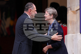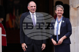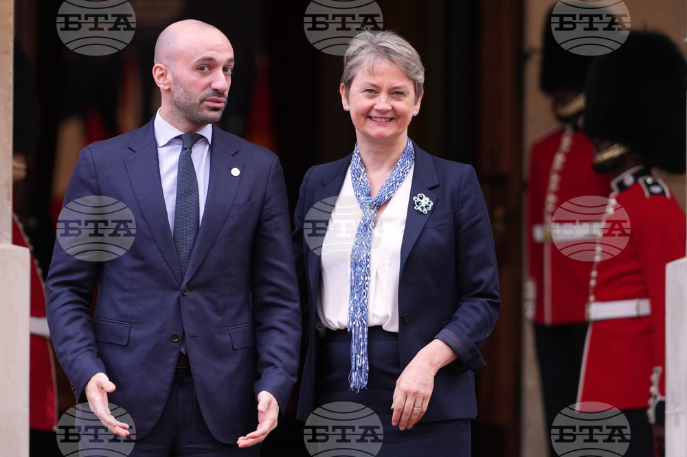 Britain's Foreign Secretary Yvette Cooper welcomes Greece's Foreign Minister Georgios Gerapetritis to a meeting of leaders of six Western Balkan nations with British and European officials at a Western Balkans Summit in London, Wednesday, Oct. 22, 2025.(AP Photo/Kirsty Wigglesworth, Pool)