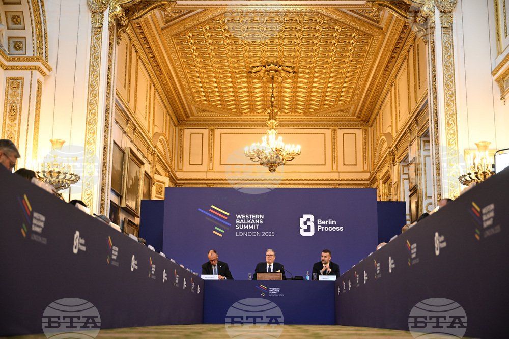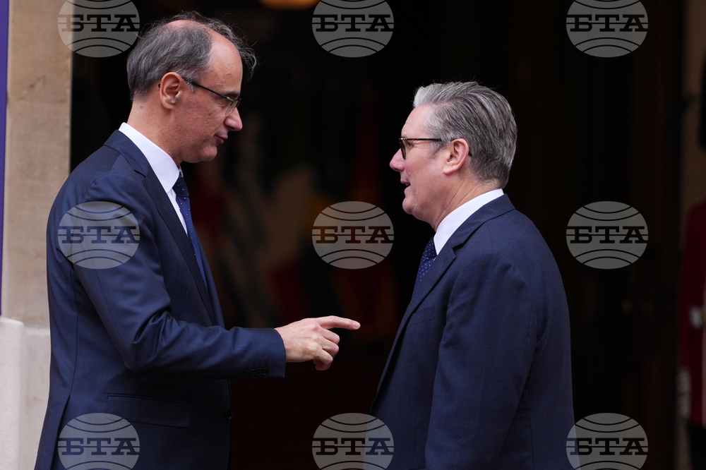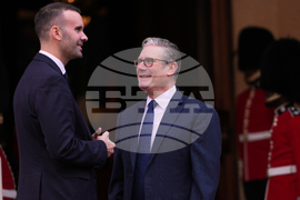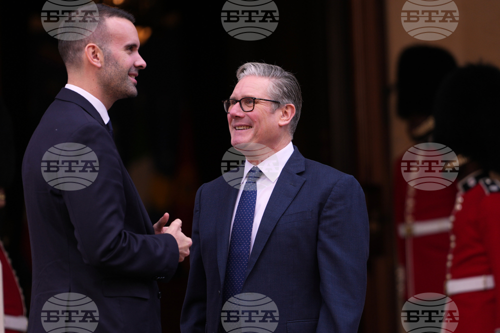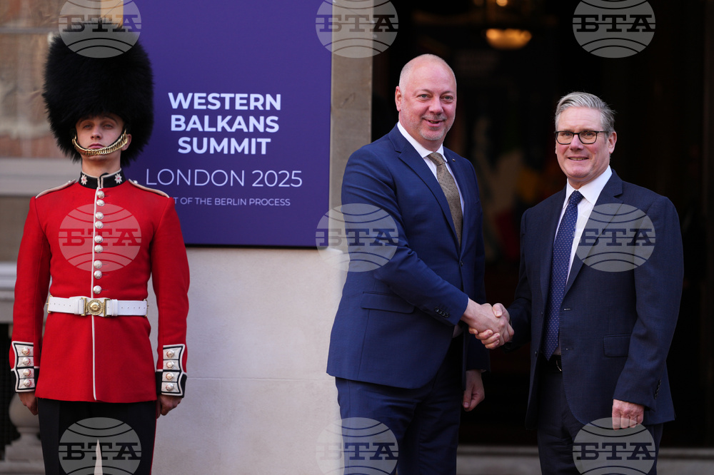 Britain's Prime Minister Keir Starmer welcomes Bulgaria's Prime Minister Rossen Jeliazkov to a meeting of leaders of six Western Balkan nations with British and European officials at a Western Balkans Summit in London, Wednesday, Oct. 22, 2025.(AP Photo/Kirsty Wigglesworth, Pool)