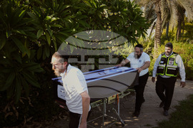 Friends attend the farewell ceremony for Sonthaya Oakkharasri, a Thai national who was killed and taken hostage by Hamas into Gaza, before his body is flown back to Thailand for burial, at Ben Gurion Airport in Lod, Israel, on Wednesday, Oct. 22, 2025. (AP Photo/Ariel Schalit)