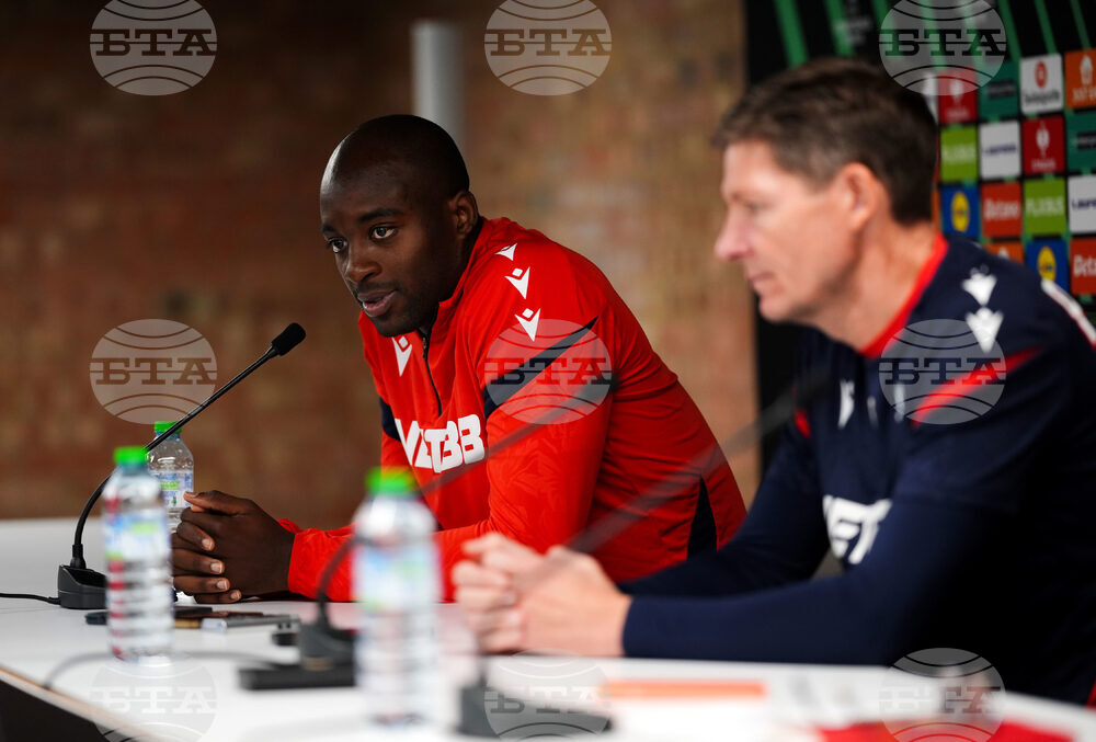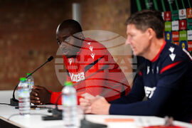 Crystal Palace's Jean-Philippe Mateta during a press conference at the Crystal Palace FC Academy, Beckenham, England, Wednesday, Oct. 22, 2025. (John Walton/PA via AP)