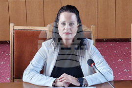 Велико Търново (22 октомври 2025) Във Велико Търново се провежда брифинг във връзка с обществените нагласи по отношение качеството на водата във водопроводната мрежа. На снимката: областният управител на Велико Търново Юлия Ликоманова-Мутафчиева.