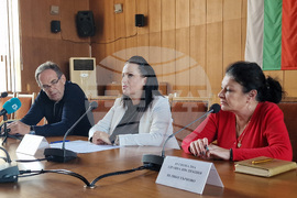 Велико Търново (22 октомври 2025) Във Велико Търново се провежда брифинг във връзка с обществените нагласи по отношение качеството на водата във водопроводната мрежа. На снимката (от ляво надясно): управителят на ВиК „Йовковци" - Велико Търново и председател на Съюза на ВиК операторите в Република България Илиян Илиев, областният управител на Велико Търново Юлия Ликоманова-Мутафчиева и директорът на Диркеция „Обществено здраве“ в Регионална здравна инспекция във Велико Търново д-р Лора Бижева.
