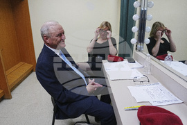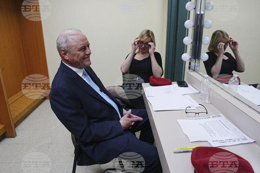 Republican candidate Curtis Sliwa, left, prepares before participating in a second New York City mayoral debate at LaGuardia Performing Arts Center at LaGuardia Community College in the Queens borough of New York, Wednesday, Oct. 22, 2025. (Hiroko Masuike/The New York Times via AP, Pool)
