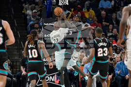 Memphis Grizzlies forward Cedric Coward (23) shoots against New Orleans Pelicans center Yves Missi (21) in the second half of an NBA basketball game Wednesday, Oct. 22, 2025, in Memphis, Tenn. (AP Photo/Brandon Dill)