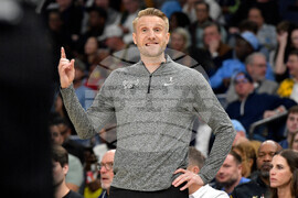 Memphis Grizzlies head coach Tuomas Iisalo reacts in the second half of an NBA basketball game against the New Orleans Pelicans Wednesday, Oct. 22, 2025, in Memphis, Tenn. (AP Photo/Brandon Dill)