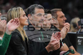 Boston Celtics owner Bill Chisholm applauds during the first half of an NBA basketball game agains the Philadelphia 76ers, Wednesday, Oct. 22, 2025, in Boston. (AP Photo/Charles Krupa)