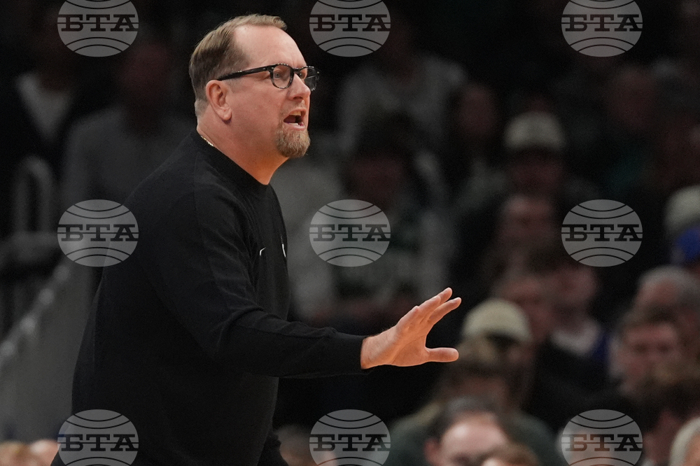 Philadelphia 76ers head coach Nick Nurse calls to his players during the first half of an NBA basketball game against the Boston Celtics, Wednesday, Oct. 22, 2025, in Boston. (AP Photo/Charles Krupa)