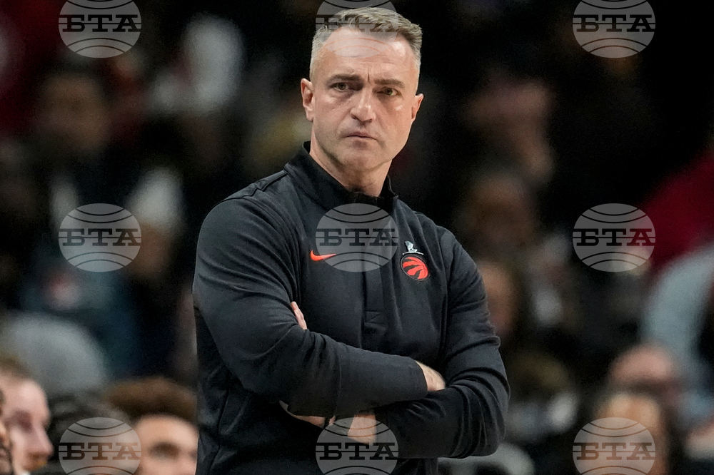 Toronto Raptors head coach Darko Rajaković watches play against the Atlanta Hawks during the first half of an NBA basketball game, Wednesday, Oct. 22, 2025, in Atlanta. (AP Photo/Mike Stewart)