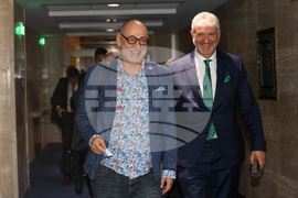 София (23 октомври 2025) Парламентът провежда редовно заседание в сградата Народното събрание. На снимката (от ляво надясно): народните представители от ГЕРБ-СДС Христо Терзийски и Стефан Апостолов.