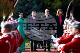 София (23 октомври 2025) Държавният глава Румен Радев (вляво) и съпругата му Десислава Радева посрещат генералния секретар на Виетнамската комунистическата партия То Лам (вдясно) и съпругата му Нго Фъонг Ли на площад „Св. Александър Невски“. То Лам отдава почит пред Паметника на Незнайния воин.