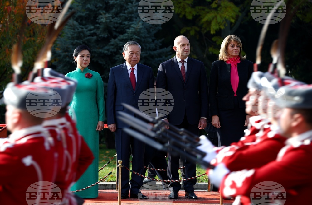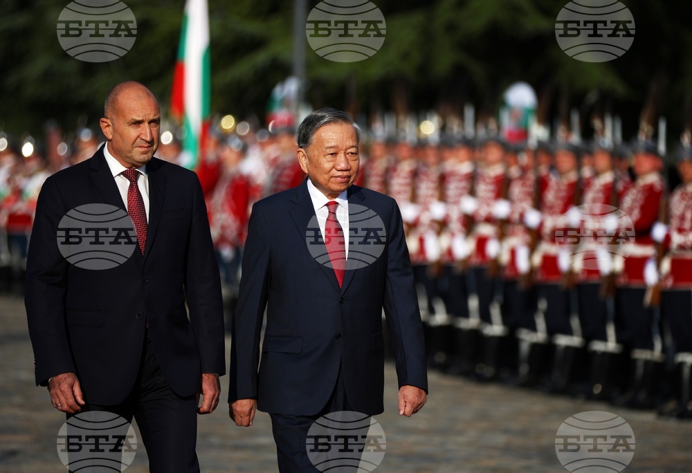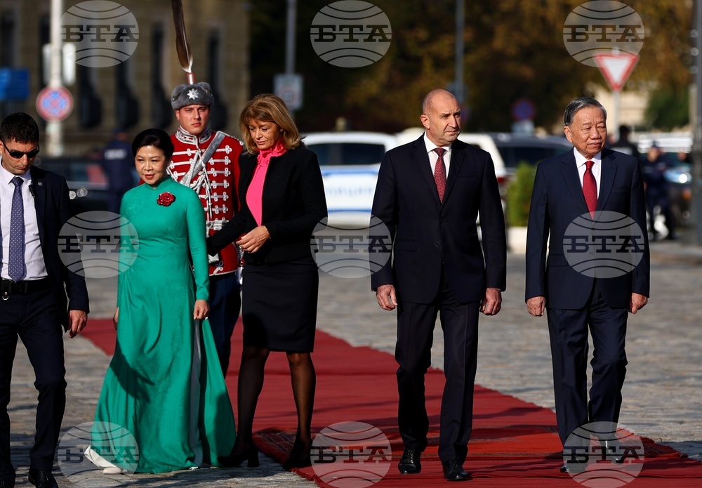 София (23 октомври 2025) Държавният глава Румен Радев и съпругата му Десислава Радева посрещат генералния секретар на Виетнамската комунистическата партия То Лам и съпругата му Нго Фъонг Ли на площад „Св. Александър Невски“. То Лам отдава почит пред Паметника на Незнайния воин.