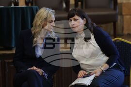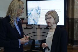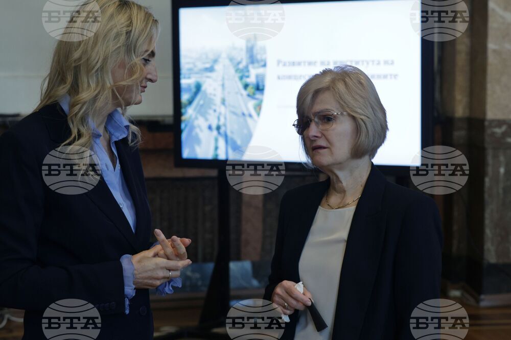 София (23 октомври 2025) Дискусионен форум на тема "Концесиите - възможности и предизвикателства" се провежда в Аулата на Софийски университет "Св. Климент Охридски". Организатор е Стопанският факултет на висшето учебно заведение. Българска телеграфна агенция е медиен партньор на събитието. На снимката (от ляво надясно): д-р икон. Розалина Козлева и д-р адв. Марина Белчева.