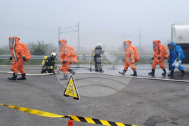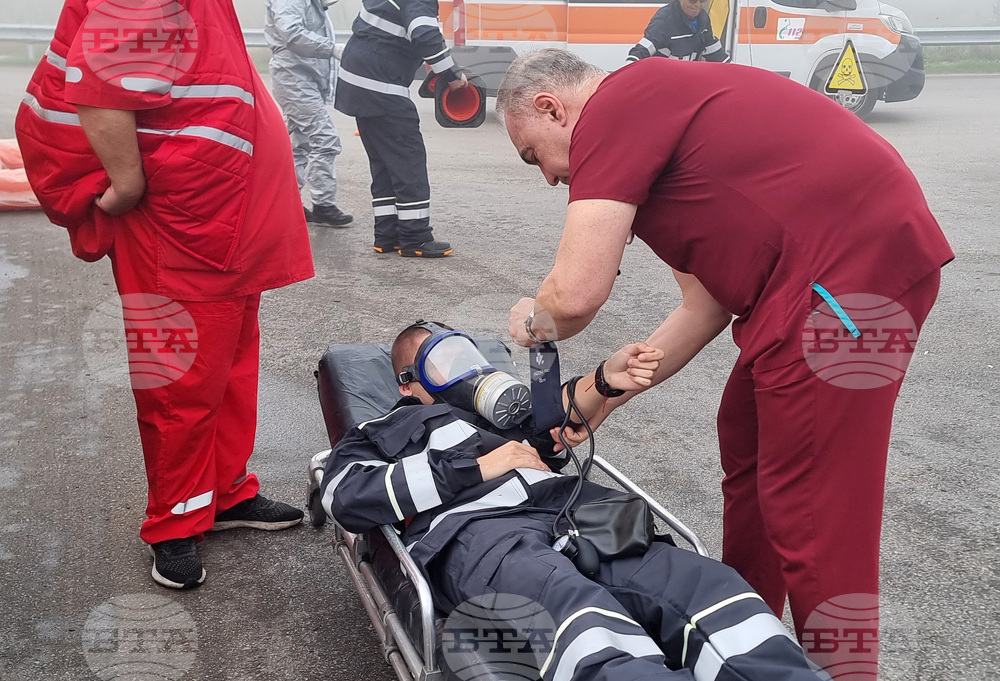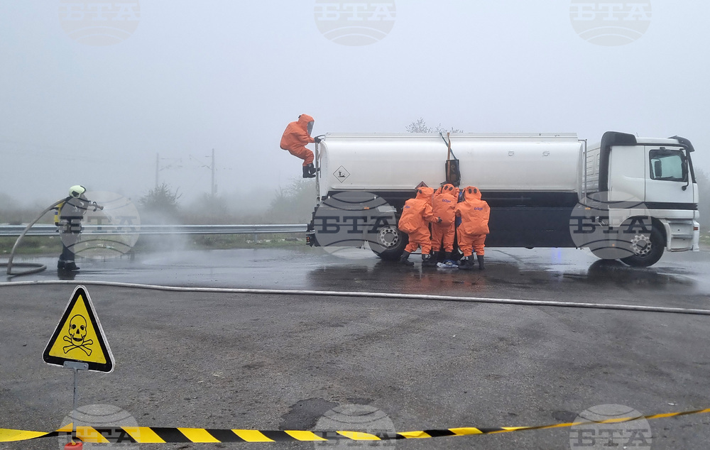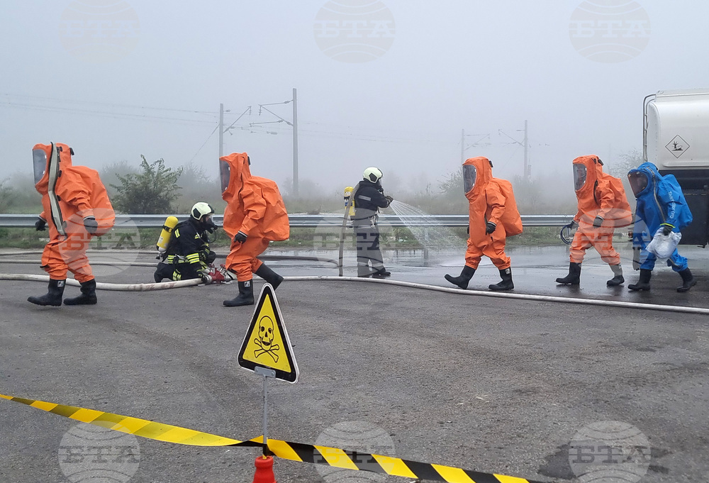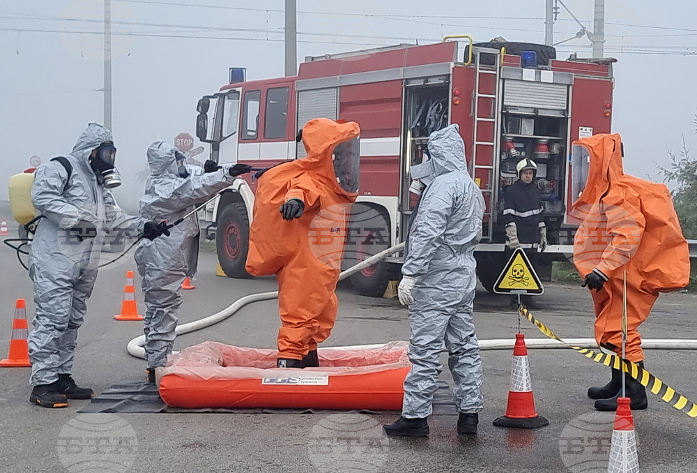 Варна (23 октомври 2025) Разлив на сярна киселина от катастрофирал камион с цистерна край Варна овладяват по време на учение представители на различни институции. В отстраняването на агресивното химическо вещество и оказването на помощ на пострадалия шофьор участват експерти от Регионалната дирекция „Пожарна безопасност и защита на населението“, Областната дирекция на МВР, Спешна медицинска помощ, Българския червен кръст, доброволци от формированията в Девня и Белослав.