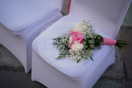 FILE - A bouquet of flowers rests on a chair ahead of a Valentine's Day group wedding ceremony at the Dade County Courthouse in Miami, Friday, Feb. 14, 2025. (AP Photo/Rebecca Blackwell, File)