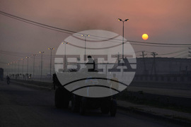 A tractor trolley moves on a road as smog envelops the areas of Lahore, Pakistan, Friday, Oct. 24, 2025. (AP Photo/K.M. Chaudary)