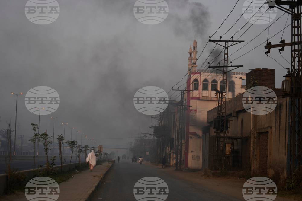 A woman walks on a road as smog envelops the areas of Lahore, Pakistan, Friday, Oct. 24, 2025. (AP Photo/K.M. Chaudary)