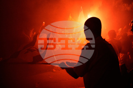People celebrate as freed Israeli hostage Matan Angrest, recently released from Hamas captivity in Gaza, returns home to Kiryat Bialik, Israel, from the hospital, Thursday, Oct. 23, 2025. (AP Photo/Ohad Zwigenberg)