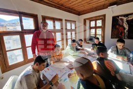 Смолян (23 октомври 2025) Арт терапевтично ателие „Цветни емоции“ в Смолян се бори срещу агресията при подрастващите. От три години в къща-музей „Петър Пиронков“ смолянски ученици изразяват чрез рисунки своя вътрешен свят - многопластов и богат като цветна палитра, на фона на музика. На снимката: психолозите Елена Бялкова-Бончева и Павлина Красина (вдясно).
