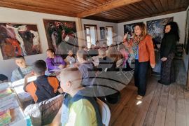 Смолян (23 октомври 2025) Арт терапевтично ателие „Цветни емоции“ в Смолян се бори срещу агресията при подрастващите. От три години в къща-музей „Петър Пиронков“ смолянски ученици изразяват чрез рисунки своя вътрешен свят - многопластов и богат като цветна палитра, на фона на музика. На снимката: художникът Петър Пиронков сред децата.