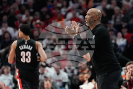 Portland Trail Blazers head coach Chauncey Billups reacts during the second half of an NBA basketball game against the Minnesota Timberwolves on Wednesday, Oct. 22, 2025, in Portland, Ore. (AP Photo/Jenny Kane)