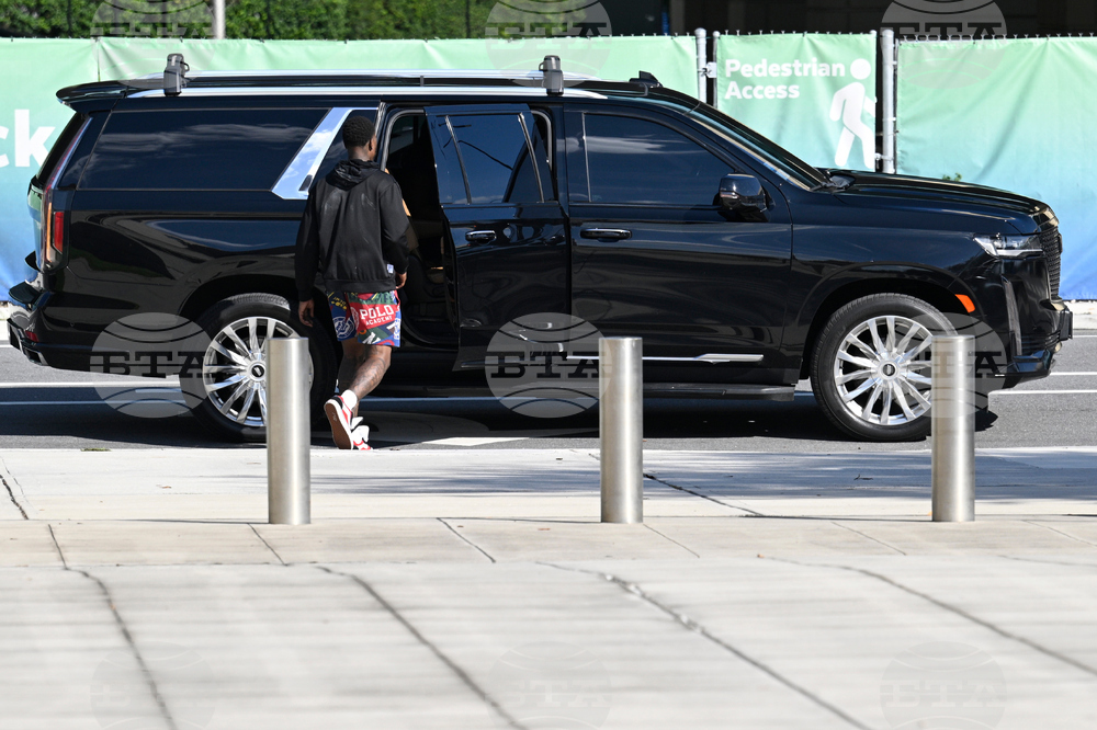 Miami Heat guard Terry Rozier gets into a limousine after leaving the federal courthouse through a side door after his arraignment, Thursday, Oct. 23, 2025, in Orlando, Fla. (AP Photo/Phelan M. Ebenhack)