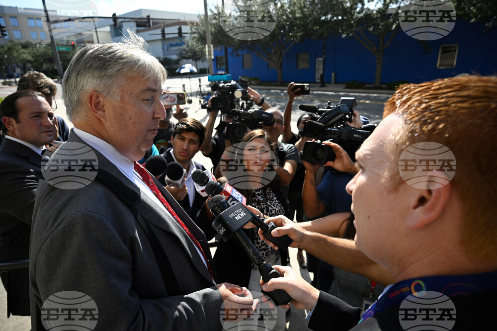 Jim Trusty, right, an attorney representing Miami Heat guard Terry Rozier, talks with the media after leaving the federal courthouse following Rozier's arraignment proceedings, Thursday, Oct. 23, 2025, in Orlando, Fla. (AP Photo/Phelan M. Ebenhack)