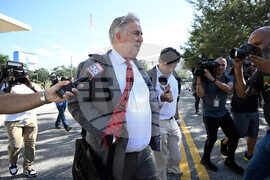 Jim Trusty, left, an attorney representing Miami Heat guard Terry Rozier, talks with the media after leaving the federal courthouse following Rozier's arraignment proceedings, Thursday, Oct. 23, 2025, in Orlando, Fla. (AP Photo/Phelan M. Ebenhack)