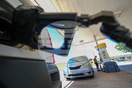 FILE - A person pays for fuel at a Shell gas station, Tuesday, July 29, 2025, in Arlington, Texas. (AP Photo/Julio Cortez, File)