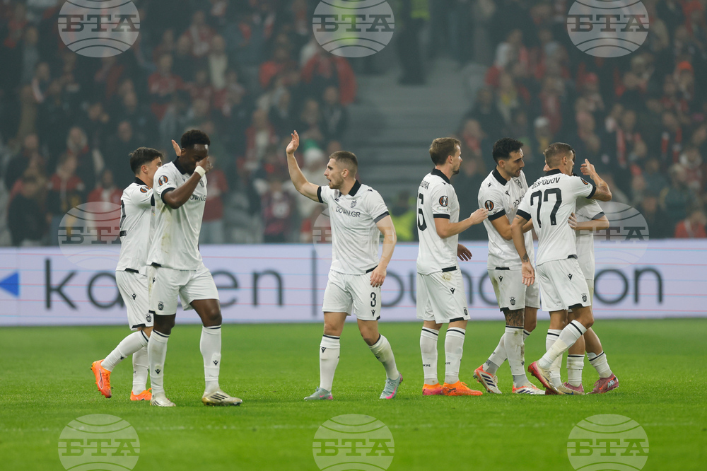 PAOK's players celebrate after Andrija Zivkovic scored his side's second goal during the Europa League opening phase soccer match between Lille and PAOK in Villeneuve-d'Ascq, outside Lille, France, Thursday, Oct. 23, 2025. (AP Photo/Jean-Francois Badias)